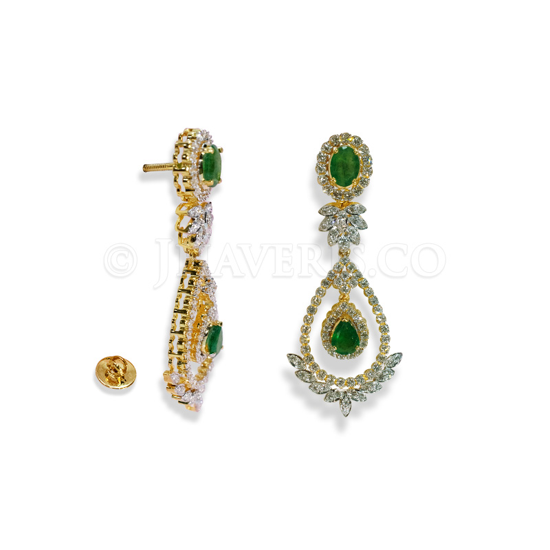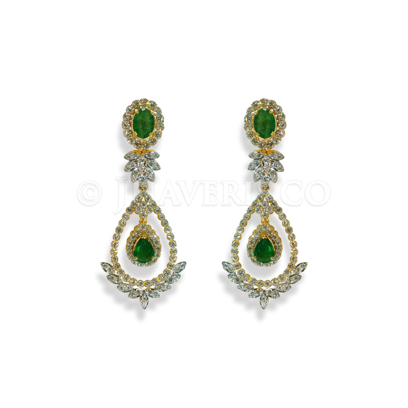 Design: Emerald Cascade Diamond Earrings showcase a graceful drop design, elegantly combining round-shaped diamonds with rich emeralds for a sophisticated appeal.