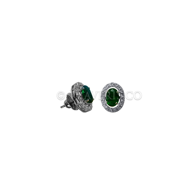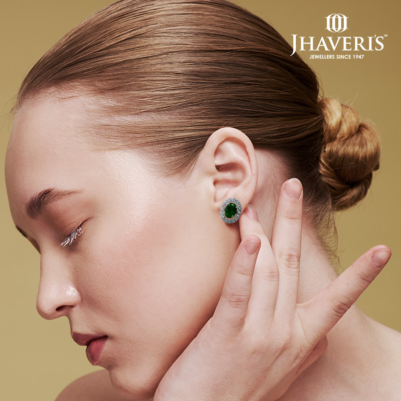 Design: A versatile 2-in-1 earring featuring a rich emerald at the center, encircled by round-cut diamonds, with a detachable oval-shaped diamond design for a statement look.