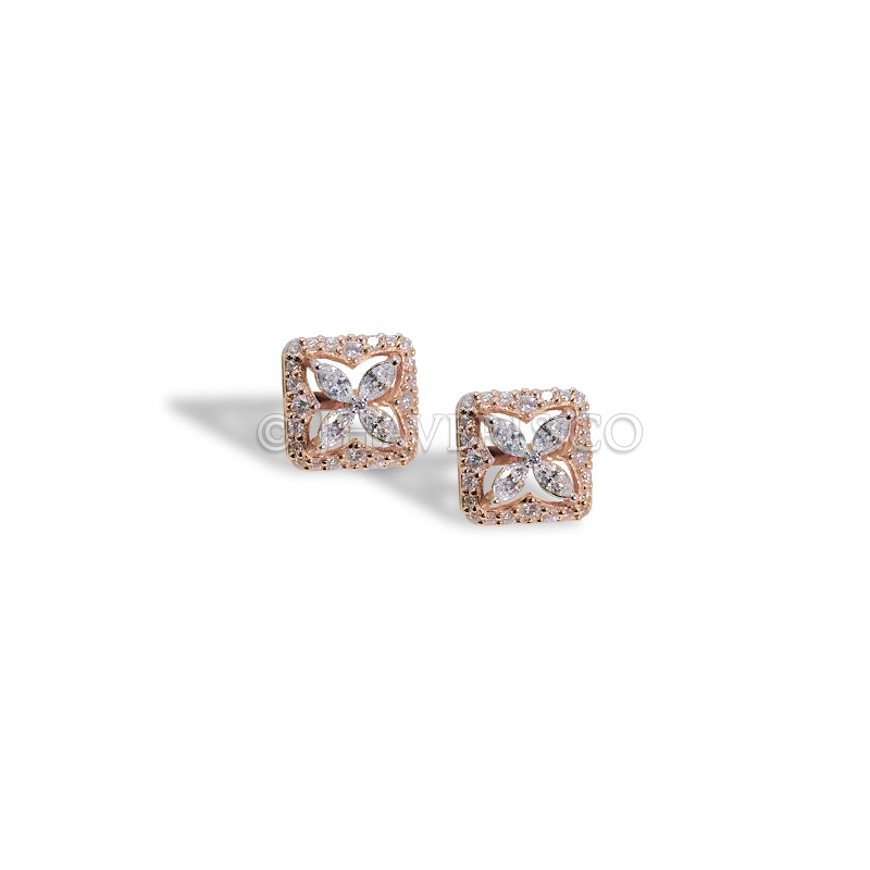 Design: Elegant square-shaped earrings crafted in a flower-inspired design, featuring a harmonious blend of marquise and round-shaped diamonds.