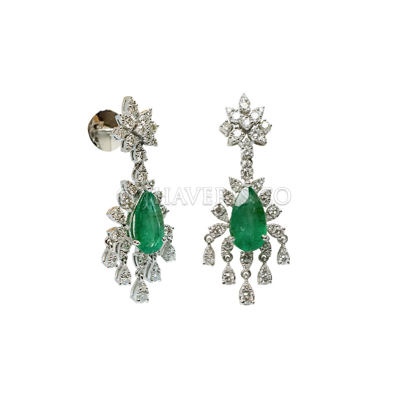 Design: Crafted in 18K white gold, these elegant long earrings feature a seamless line of round-cut diamonds, highlighted with striking emerald placed in between. The combination creates a refined contrast of sparkle and green luxury