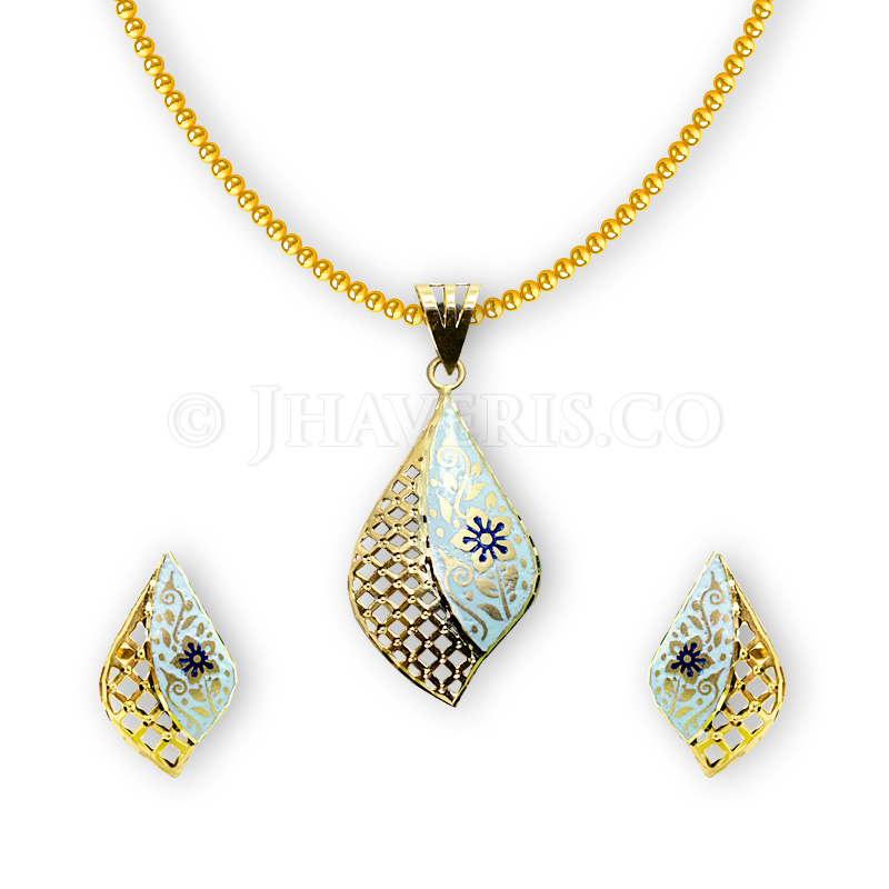 Conch Meenakari Gold Pendant Set in 22K Gold
