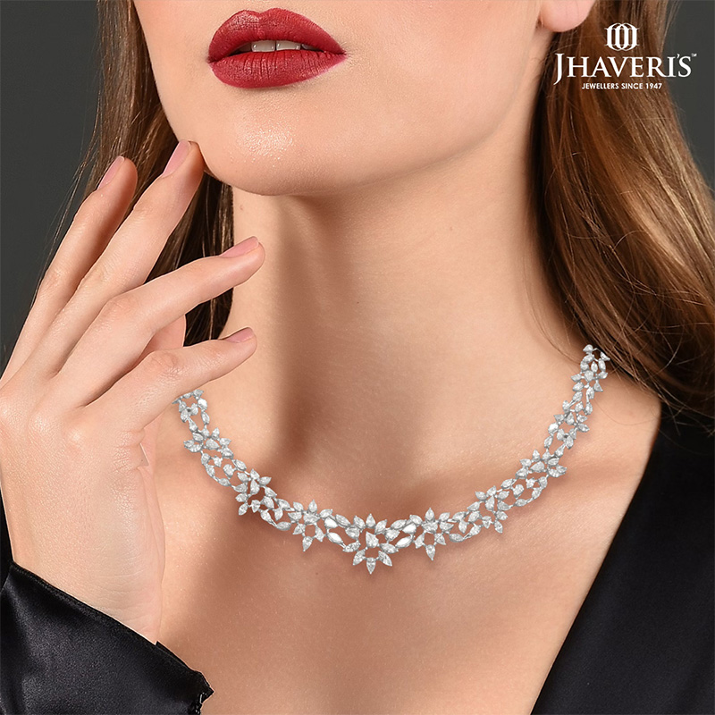 Special Feature: The unique mix of pear and marquise diamonds enhances the classic necklace design, adding a touch of sophistication and sparkle to any ensemble.