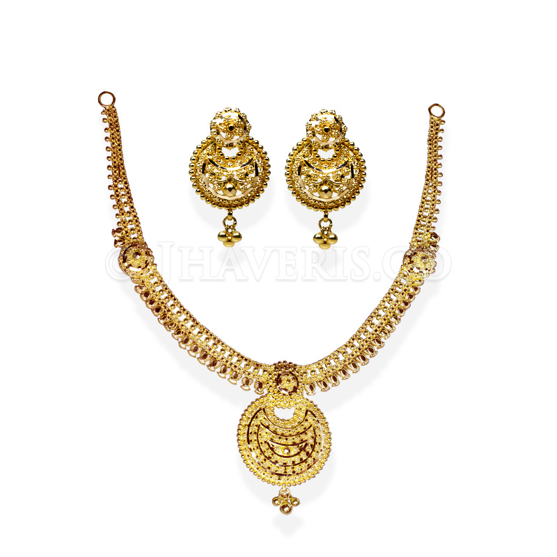 Special Feature: The intricate and graceful design of this 22K gold necklace set adds a touch of timeless elegance and sophistication, making it an ideal accessory for brides and for celebrating significant milestones.