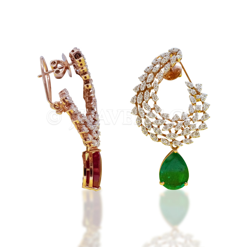 Gemstones: Sparkling round-shaped diamonds and vibrant rubies.