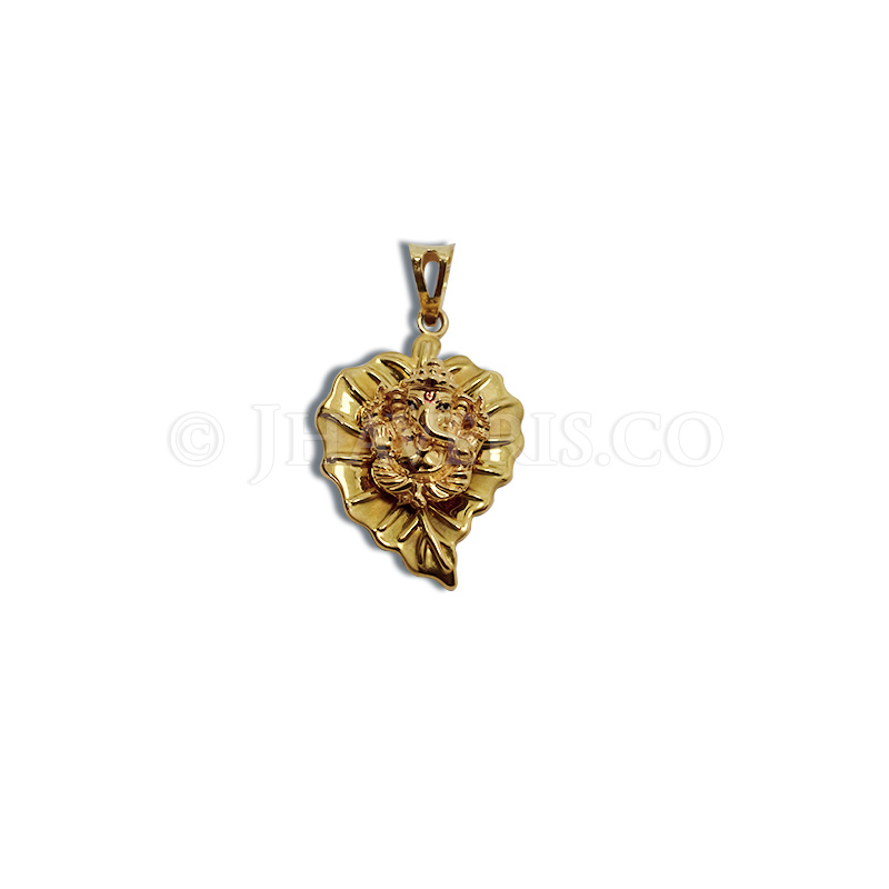 Design: A sacred 18k gold pendant featuring a beautifully detailed depiction of Lord Ganesha, symbolizing wisdom and prosperity.