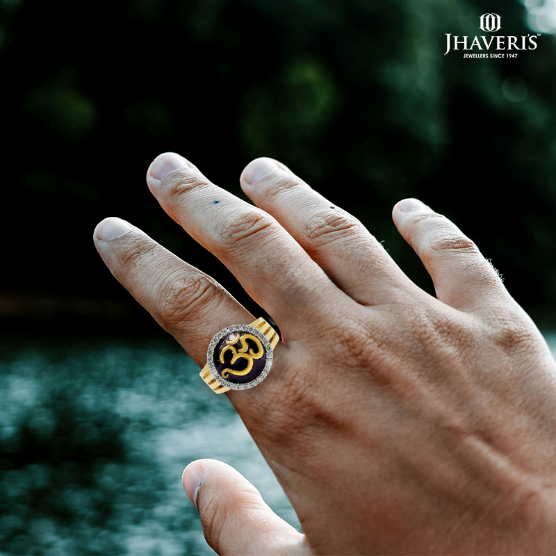 Special Feature: The fusion of the sacred OM symbol with dazzling diamonds in 18k yellow gold makes this ring a striking symbol of harmony and grace.