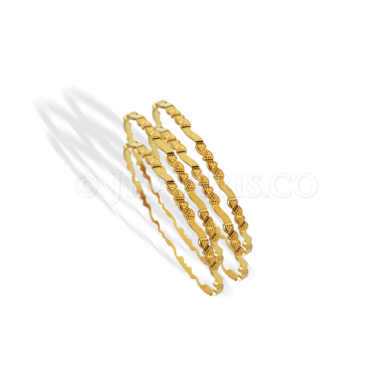 Design: This set of 4 pieces of 22k yellow gold bangles is beautifully designed with elegant detailing, combining modern style with timeless beauty for a sophisticated look.