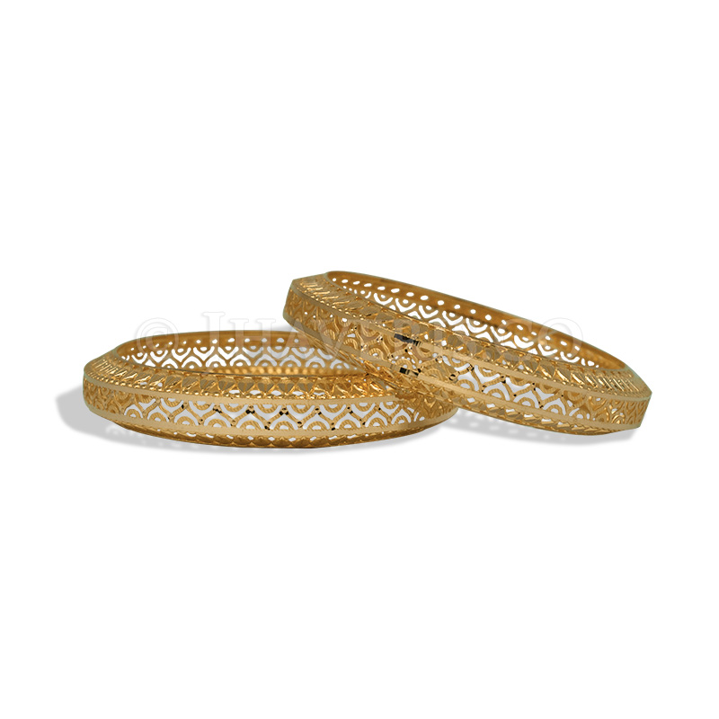 Design: This set of 2 pieces of heavy 22k yellow gold bangles showcases a bold and classic design, exuding a sense of strength and luxury.