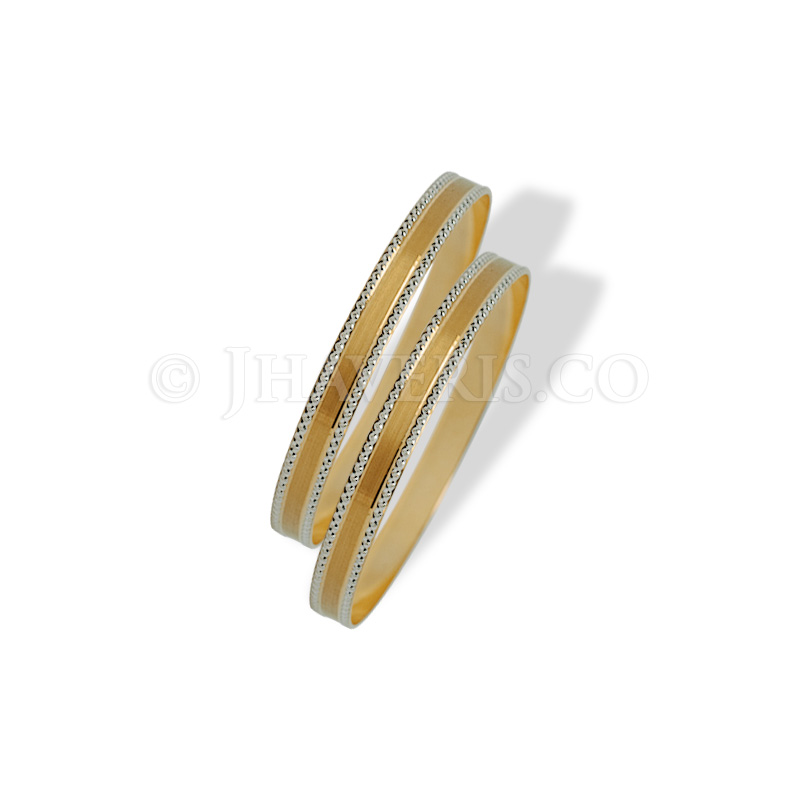 Design: This set of 2 pieces of 22k gold bangles combines the richness of yellow gold with the elegance of white gold, creating a striking and sophisticated design.