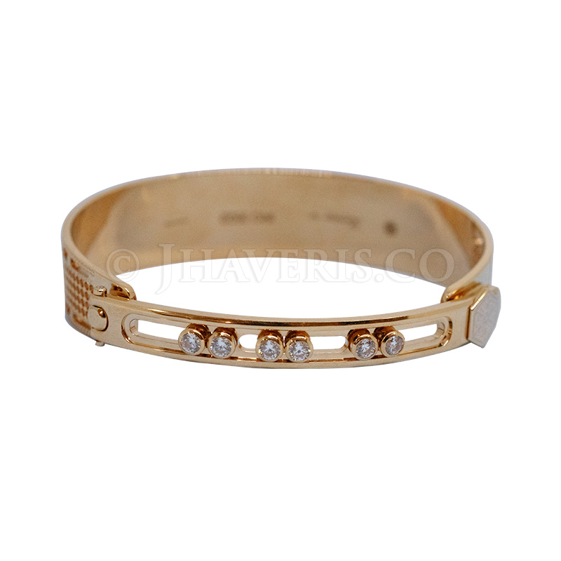 Details: The bangle features a smooth, polished surface with pink enamel accents, adding a pop of color and contemporary flair.