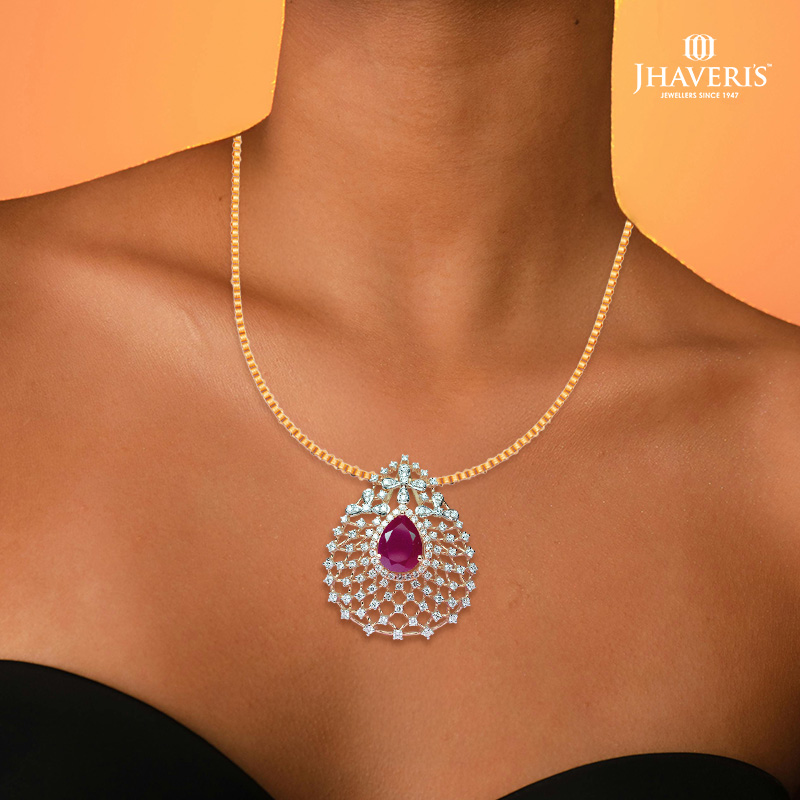 Riyana Ruby Drop Diamond Pendant Set in 18K Gold