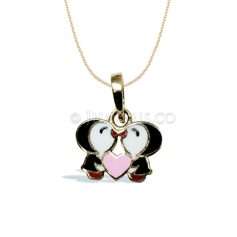 Design: Tenderly crafted in 18K yellow gold, this adorable pendant features two kissing penguins — a heartwarming symbol of love, bonding, and innocence, perfect for your little one’s first treasure